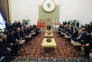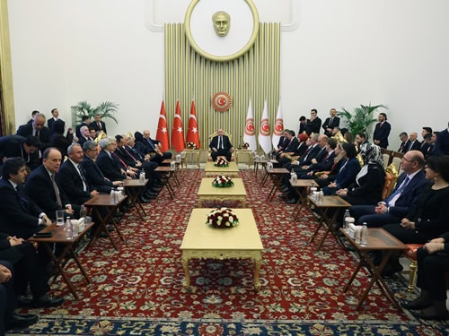 Resepsiyonda siyasi liderler ve davetliler bir araya geldi